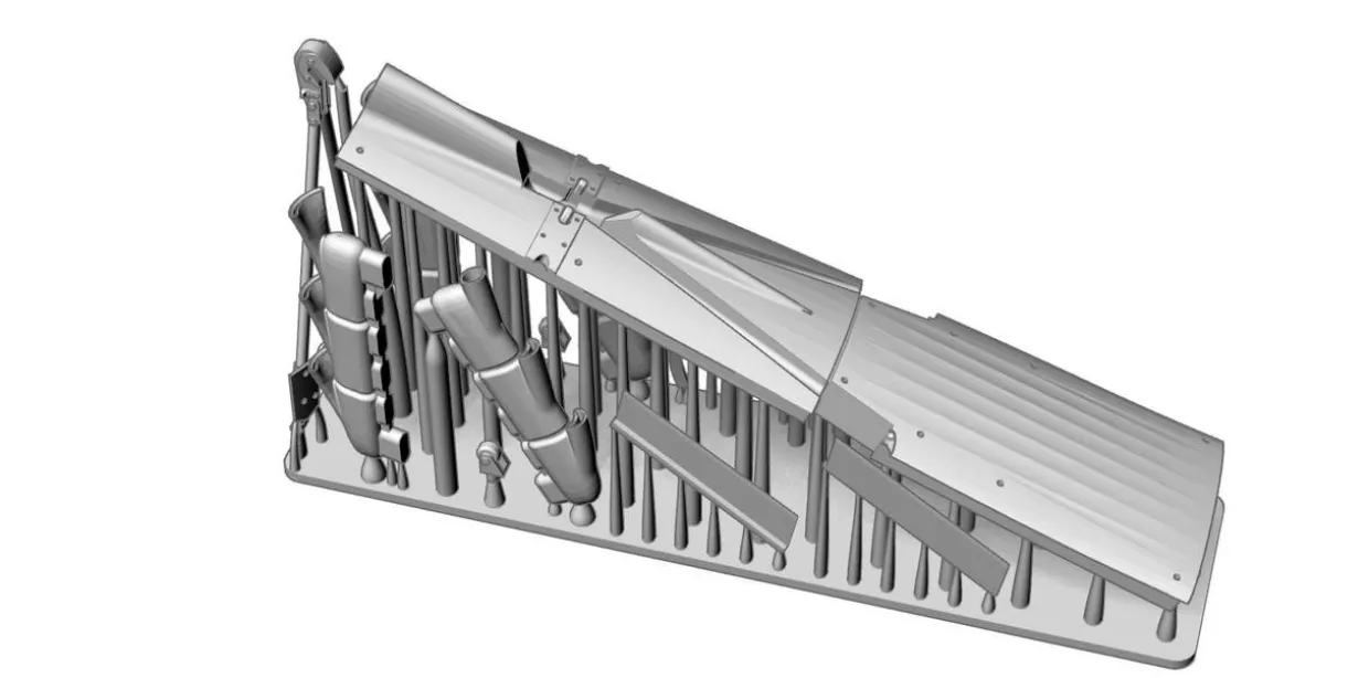 - 3D printed set with fuselage bottom, arrestor hook, exhausts (2 options), mirror, headrest, gun camera, oil collector ring, catapult spools and anti-glare exhaust shields.