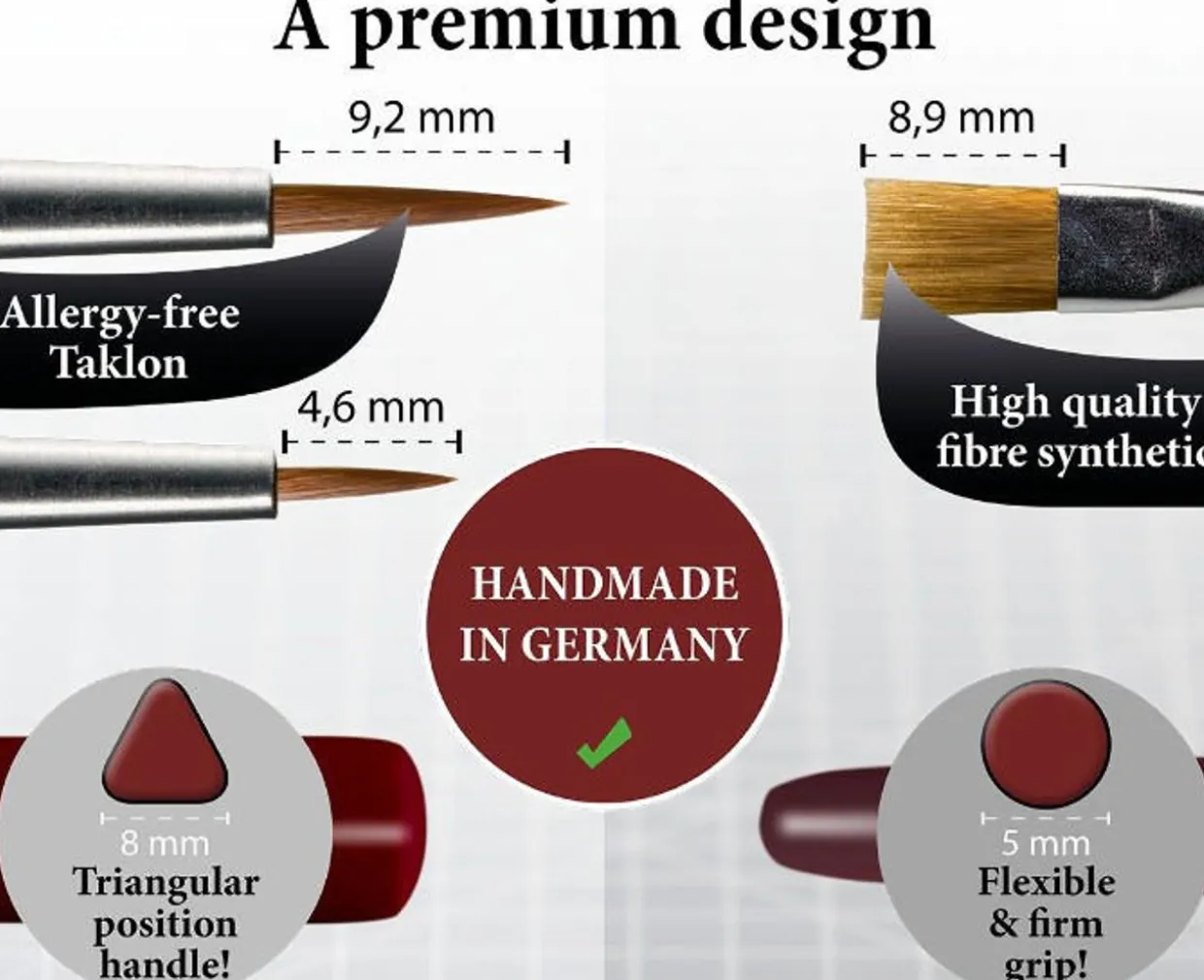 The Army Painter Hobby Starter Brush Set. Made of best quality of fiber synthetic hair for the perfect paint job. Has a triangular precision grip to ensure perfect control and comfort.