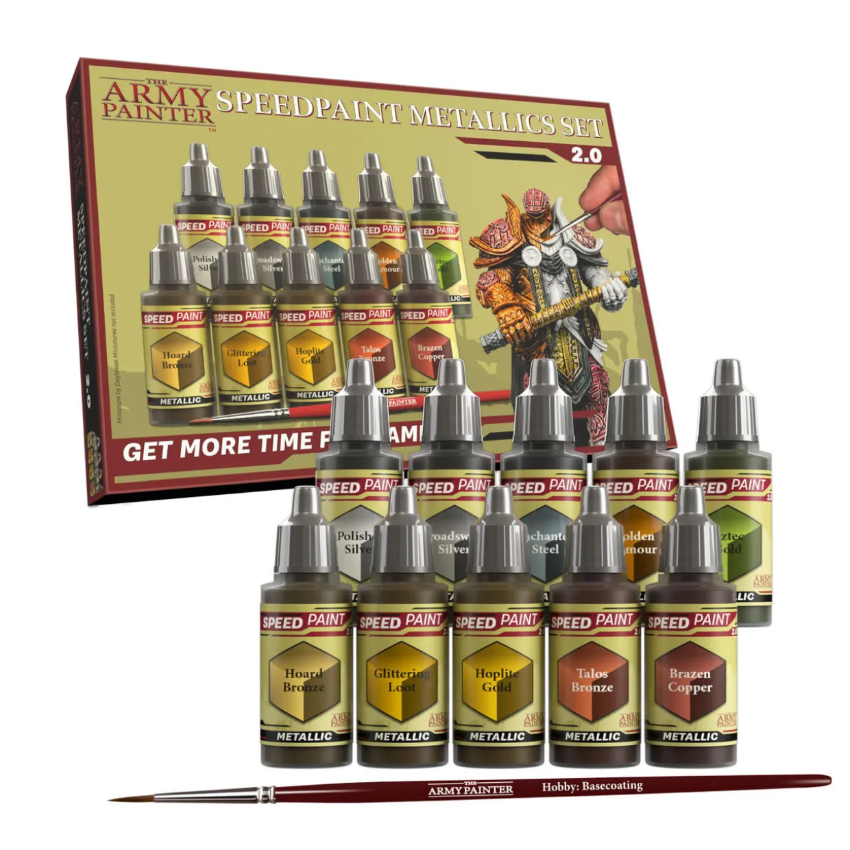 The Army Painter Speedpaint Metallic Set 2.0 Acrylic Paint Set is the easiest way to get metallic effects on your miniatures in one simple application.