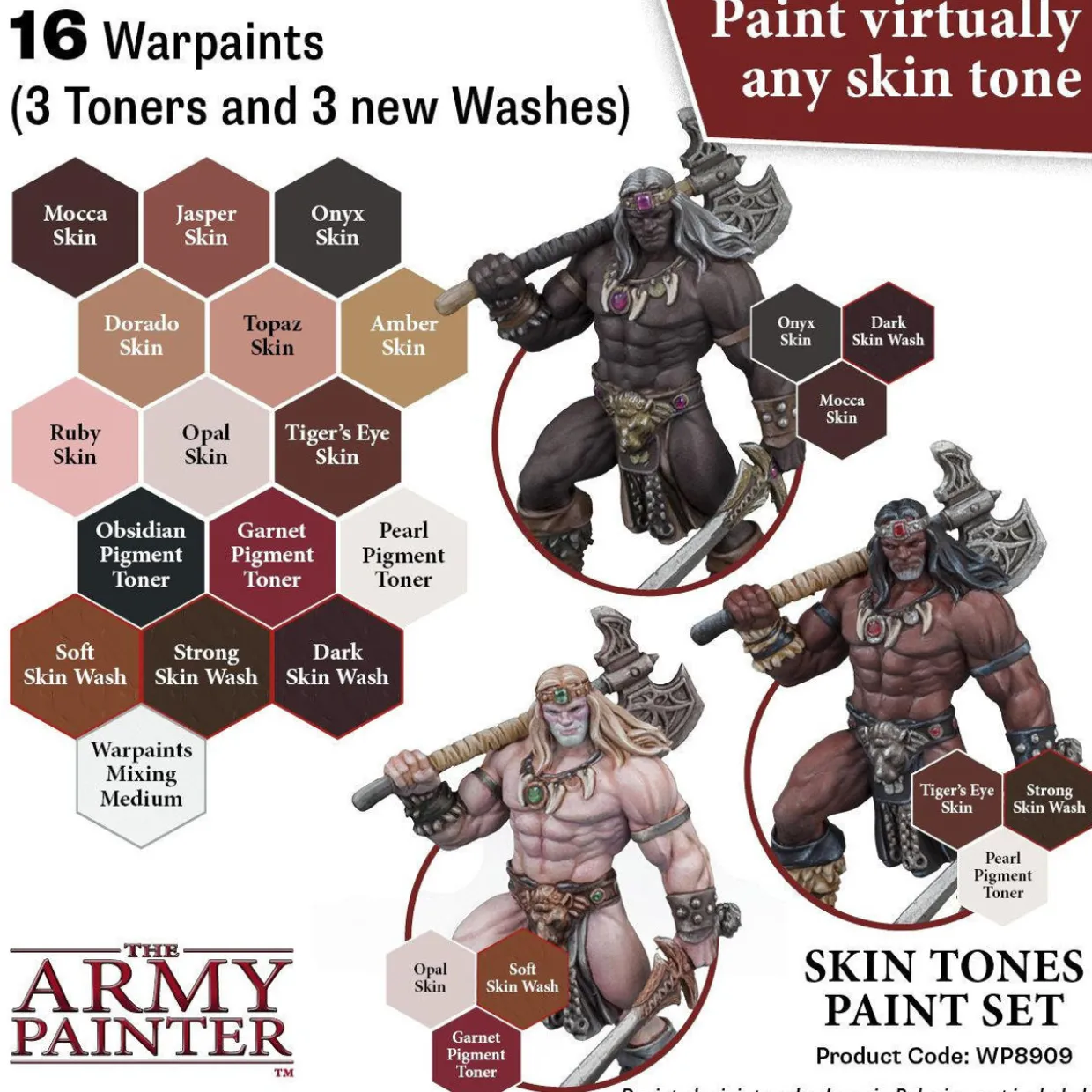The Army Painter Warpaints 8909 Skin Tones Paint Set provides a set of the 12 most popular colours in the Army Painter Skin Tones range.