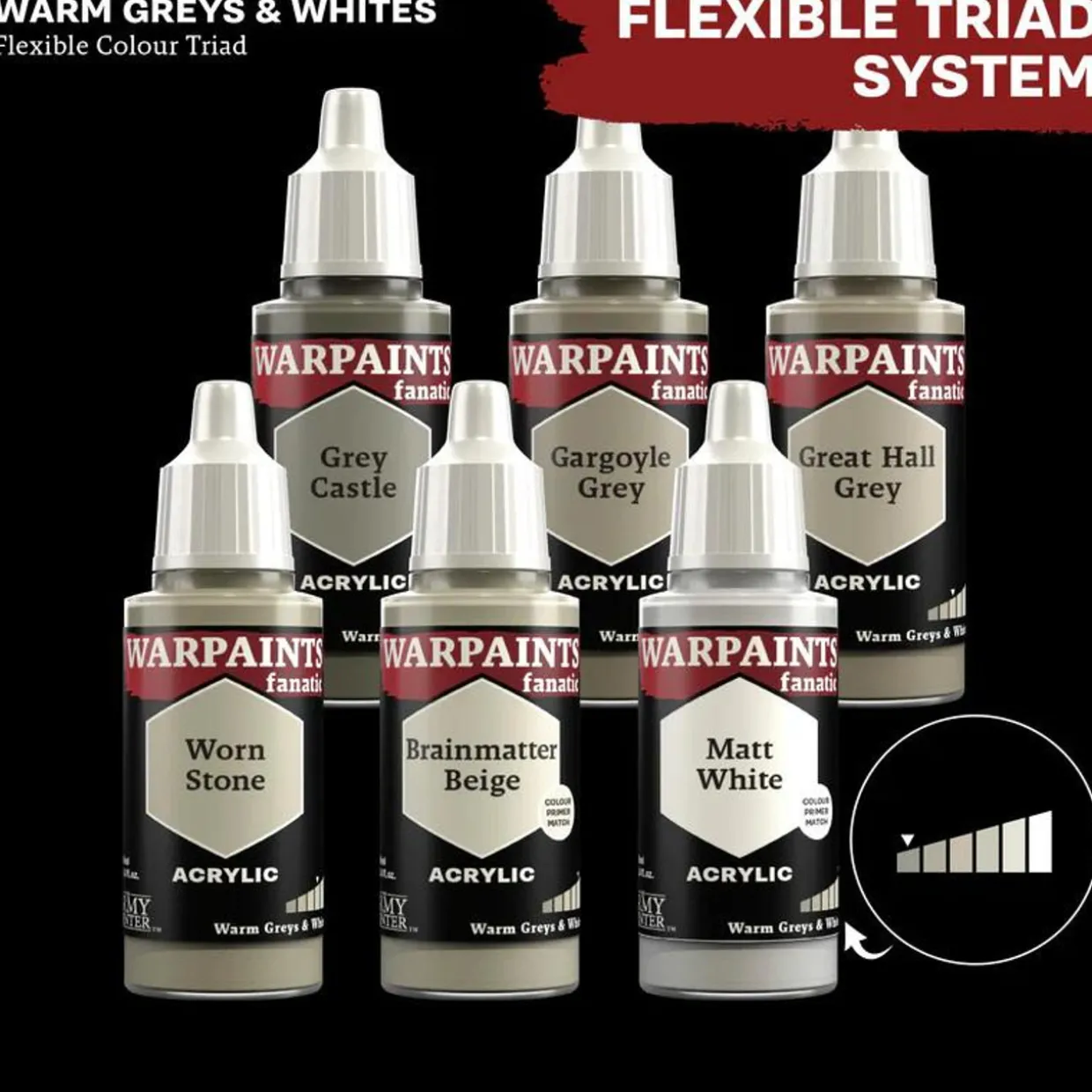 Each paint is part of a Flexible Colour Triad System: a segment, or family, of paint colours that are made using the same root colour. Inside each Flexible Colour Triad are six colours that range from dark to light with a consistent hue. With this system, you can easily select paints that create a natural colour progression on your miniatures.