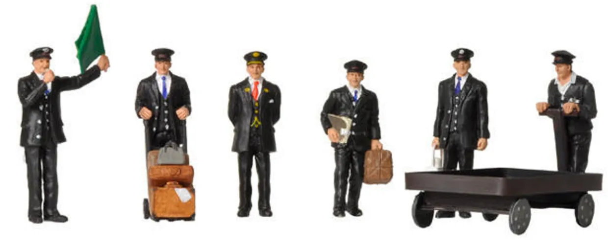 The Bachmann 1940/50s Station Staff Set Of 6 Figures is an ideal accessory set to accompany any 00 Gauge (1/76 Scale) Train set or Diorama.