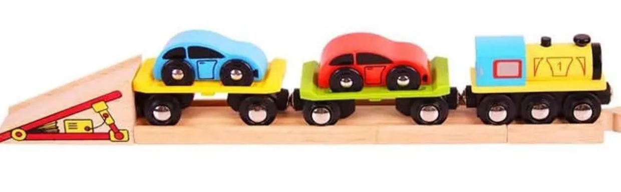 The BigJigs Car Loader Set from the BigJigs Wooden Toy Railway collection at Wonderland Models.