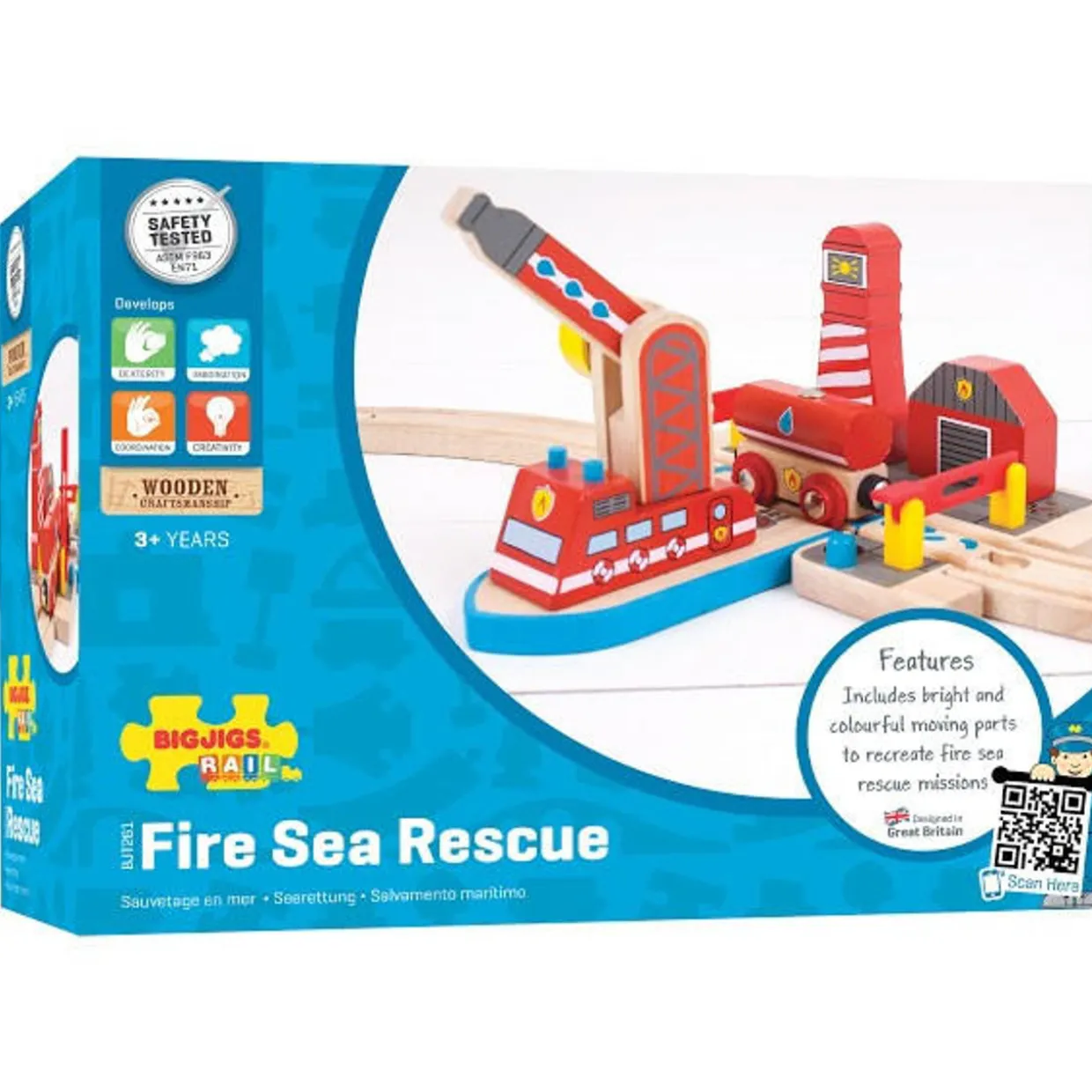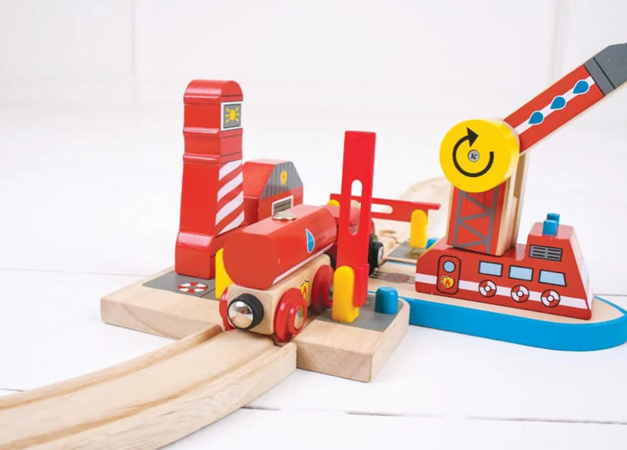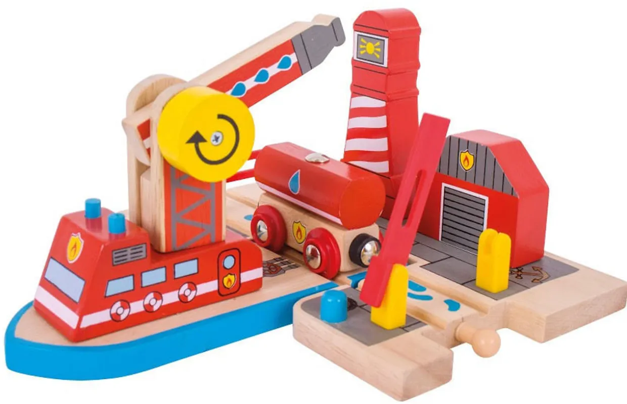 The BigJigs Fire Sea Rescue Set from the BigJigs Wooden Toy Railway collection at Wonderland Models.