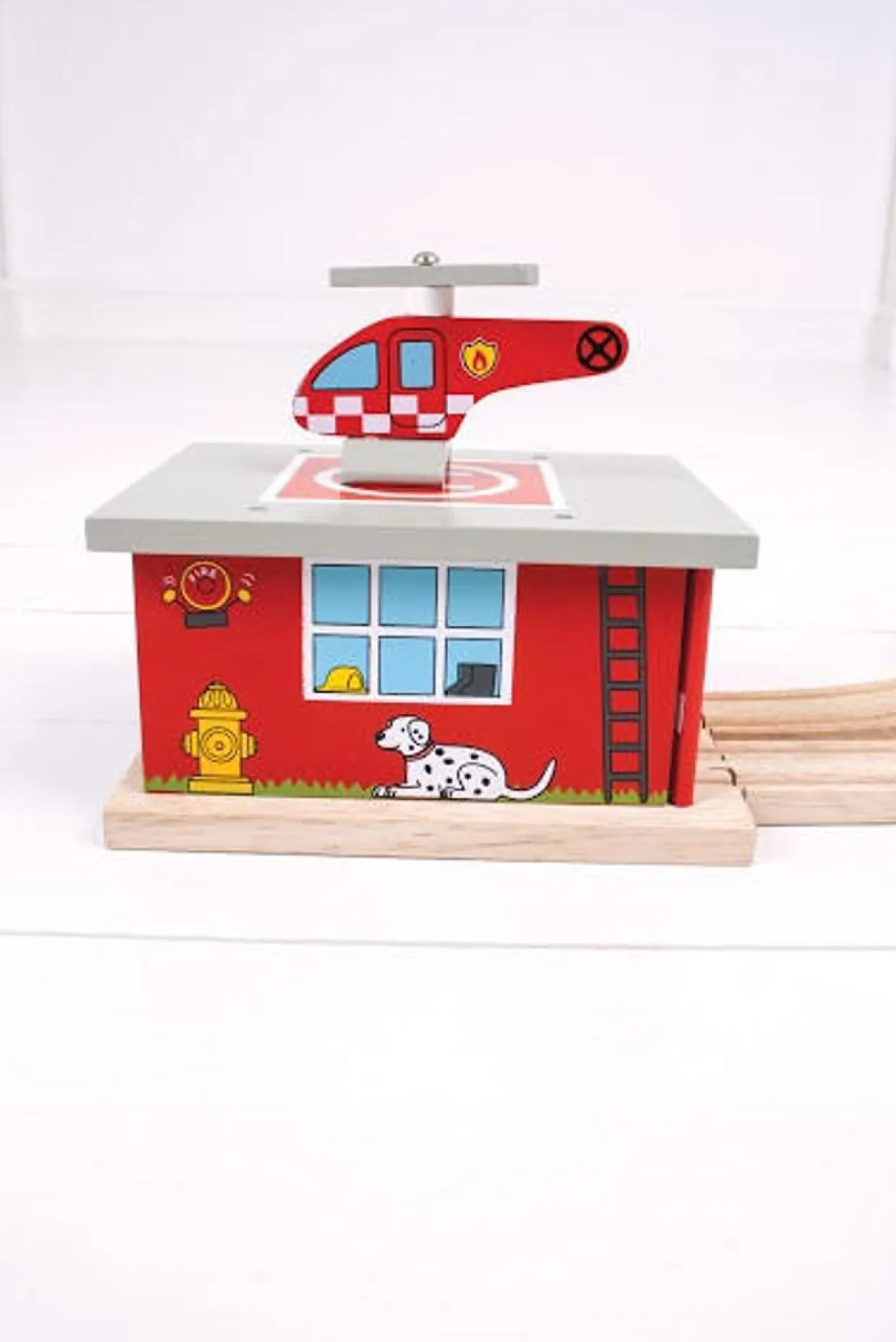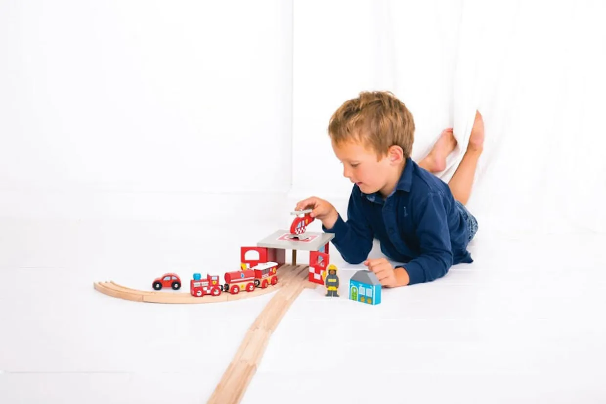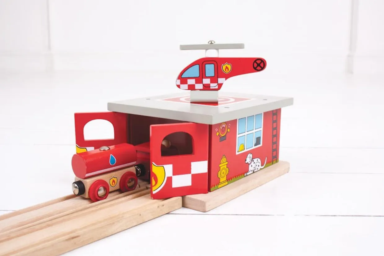 This brightly coloured and detailed Fire Station Shed Set is a great emergency vehicle addition to any BigJigs Rail layout. Also compatible with most other wooden railway brands!