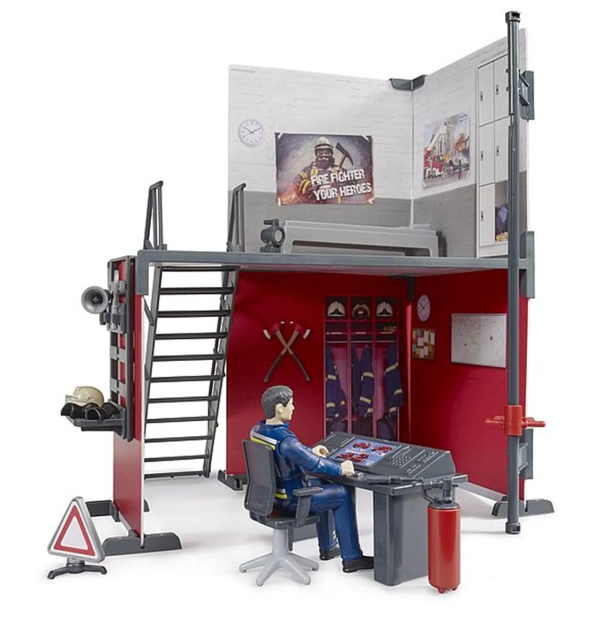 For the wide array of BRUDER fire service vehicles there is now the new bworld fire station as a coordinating site. At the incident control centre, the firefighter can coordinate and track every mission using state-of-the-art equipment. Between deployments the BRUDER firefighter can relax at the break room on the first floor. The bworld fire station can be easily combined with the other bworld themed sets.