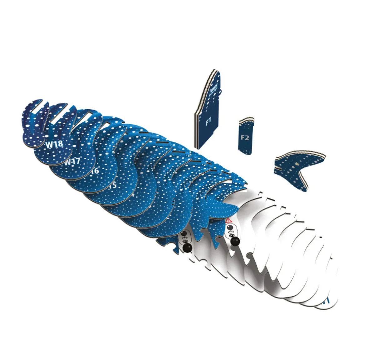 The Eugy Whale Shark is a 3D puzzle made from cardboard, designed for children ages 4 and up.