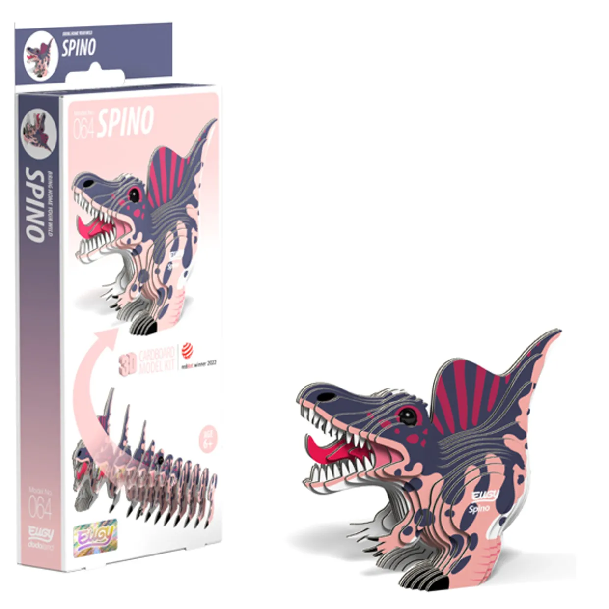 The Eugy Spino is a 3D puzzle made from cardboard, designed for children ages 4 and up.