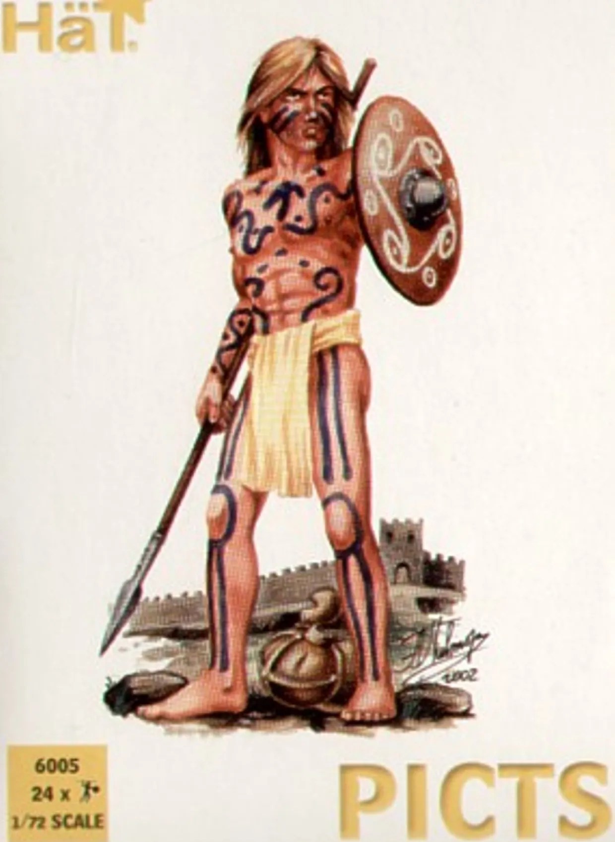 The Hat Industrie 1/72 Picts from our 1/72 and 1/76 scale figure model kits range recreates the real-life ancient Pictish warriors who inhabited the are of present-day Scotland. This plastic model kit requires paint, and may require glue, to complete.