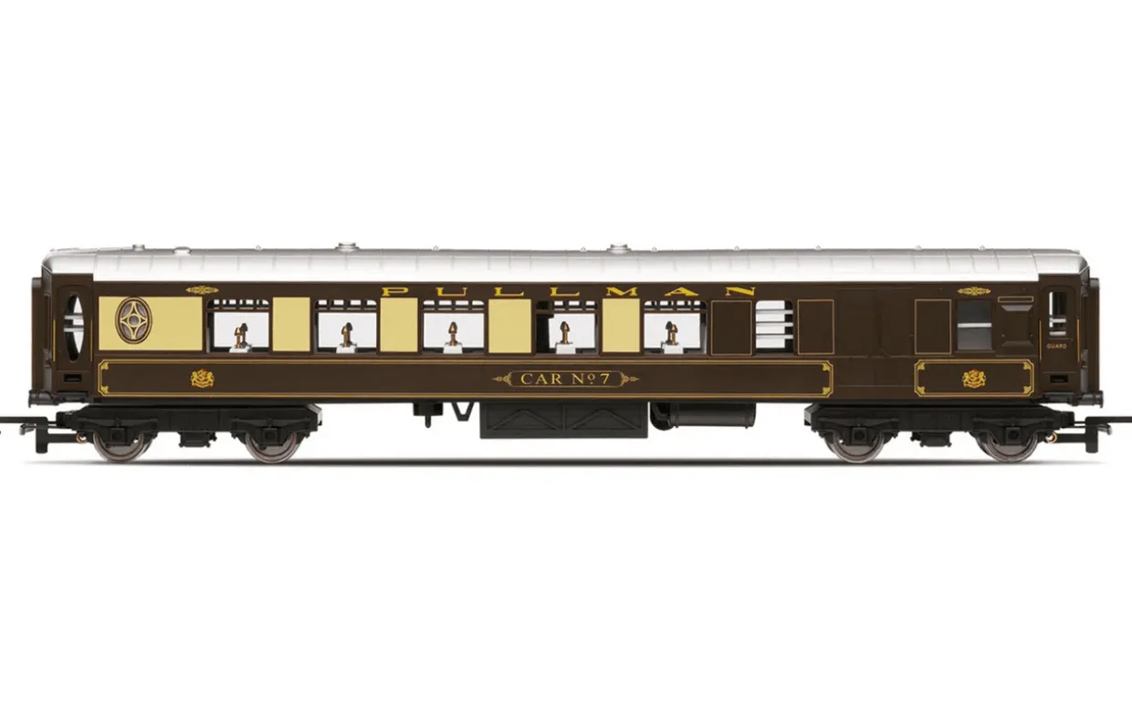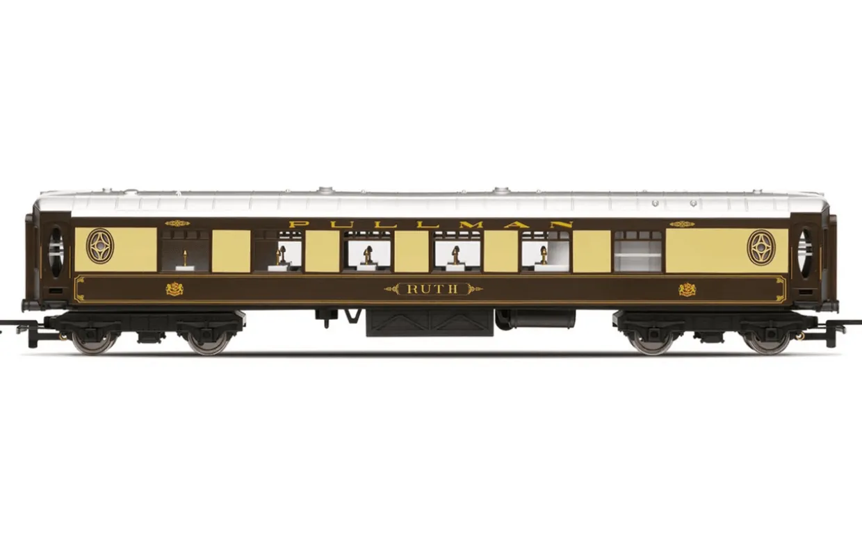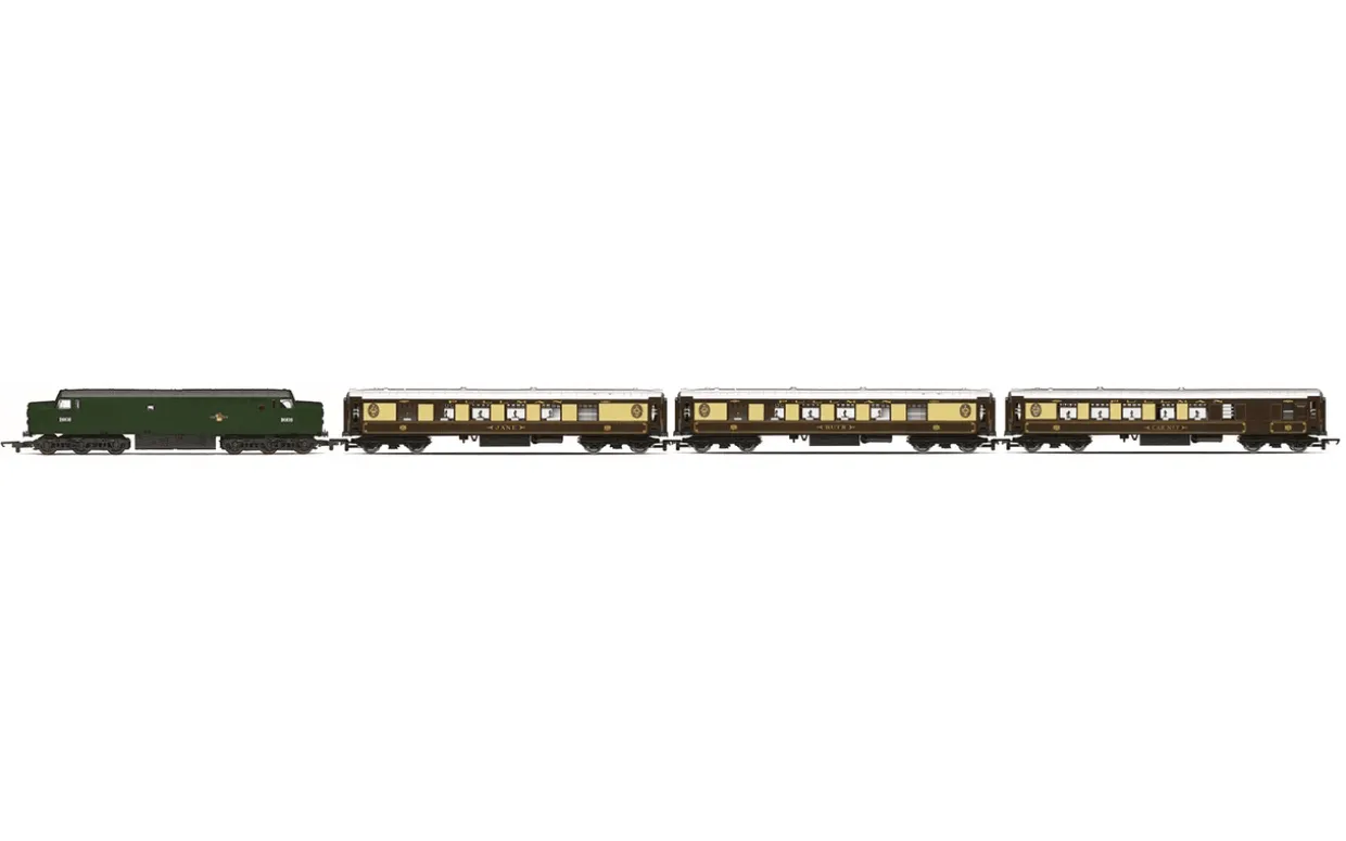 Our ‘Tri-ang Hornby Remembered’ set recreates the nostalgia of the original, using the same artwork on the box lid, and includes the BR green-liveried locomotive with its small yellow warning panels, which were typical of the time, plus Pullman Cars ‘Jane’ and ‘Ruth’, and Pullman brake ‘No.7’.