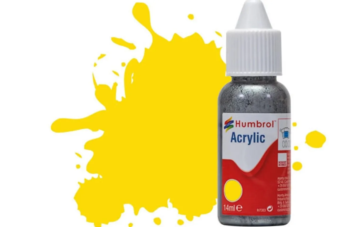 The Humbrol 69 14ml Acrylic Gloss Yellow Paint Dropper Bottle is a water-based primer paint with a matt finish that is ideal for use on plastic model kits. Water-based paints can be thinned with water or specialist acrylic thinners. The Humbrol range offers a wide selection of colours.
