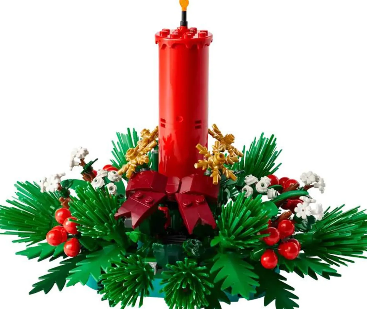 - Festive joy – The Christmas LEGO® set features a red candle at its center, surrounded by red berries, golden stars and green foliage