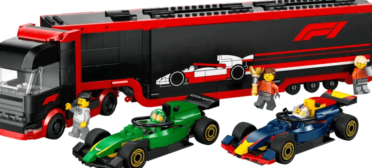The Lego City Formula 1 Truck with Red Bull RB20 and Aston Martin AMR24 Race Cars – just one of many great construction toy sets in the Lego City range.