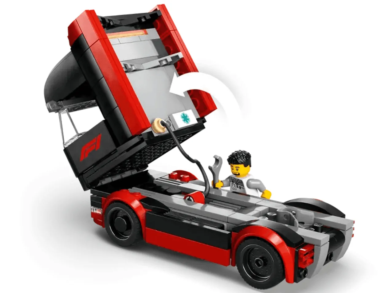 Looking for a Formula 1 car-themed gift for your young racing fan? Introducing the colossal LEGO City F1 Truck with RB20 & AMR24 F1 Cars playset for ages 8 and over. This premium transport truck toy features a detachable low-loader trailer with an F1 simulator room and a double vehicle bay with fully opening side panels. Kids can lift the rear hatch and slide out the loading ramps to load the cool RB20 and AMR24 F1 race cars onto the truck. The set also includes 2 driver and 3 race crew minifigures, plus a trophy for epic racetrack roleplay.