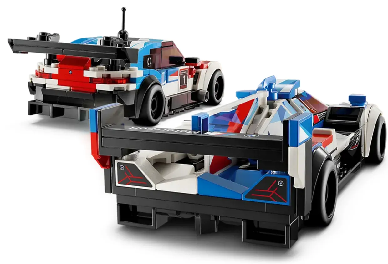 The BMW M4 GT3 and BMW M Hybrid V8 replica models both include authentic design details from the real-life versions, including exhaust pipes, diffusers, rear wings, the BMW M Motorsport livery and interior features. The toy racing cars both come with a removable roof and a driver minifigure for kids to place inside for racing action.