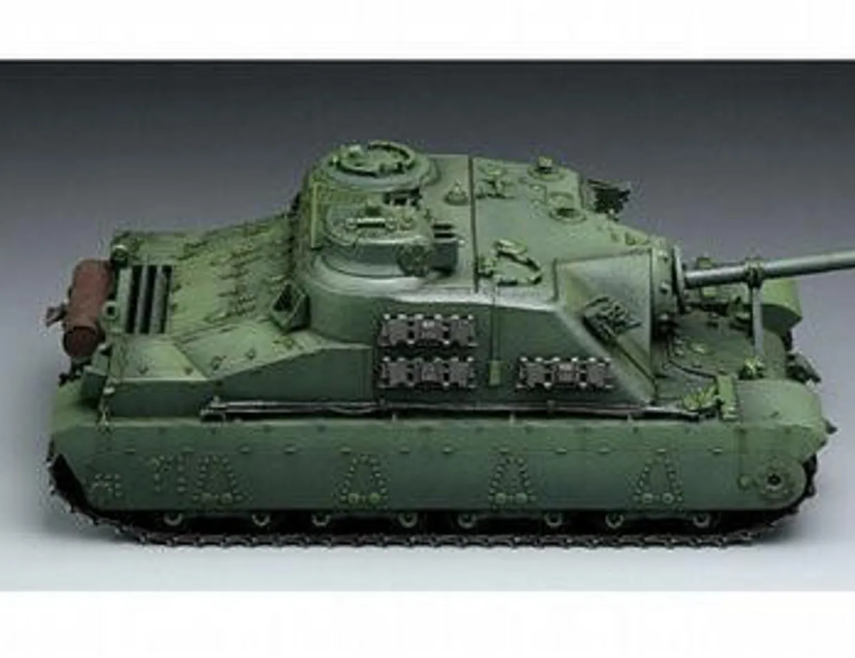 Being developed as per the real tank in the Tank Museum in Bovington UK, the models giant body is full of sense of pressure and the model is extremelyattractive asa super heavy tank. The 1:35 scale body is shaped accurately and all details are reproduced exactly, requiring only a little time and energy to finish it. Perfectly modeled details of the uniquely shaped fight compartment as well as fine molding technique present the casting traces on armour surface as attractive as on real vehicle. Cast steel and roll steel armour plates on top of the fighting compartment are reproduced accurately with delicate angle changes being perfectly represented, even the rough weld seams are reproduced as real ones.