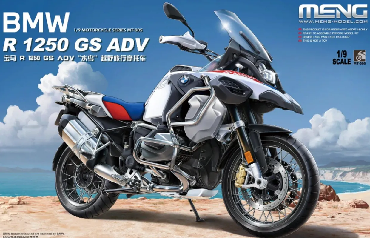 The Meng 1/9 BMW R 1250 GS ADV from our 1/9 scale motorcycle model kits range accurately recreates the real-life German adventure motorbike. This plastic model kit requires paint and glue to complete.