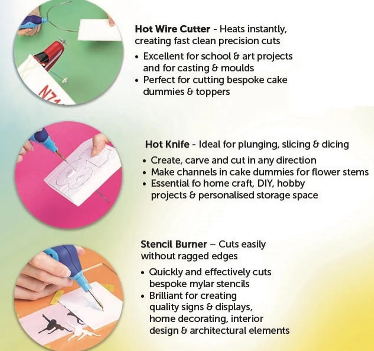 - Stencil burner to create instant bespoke stencils