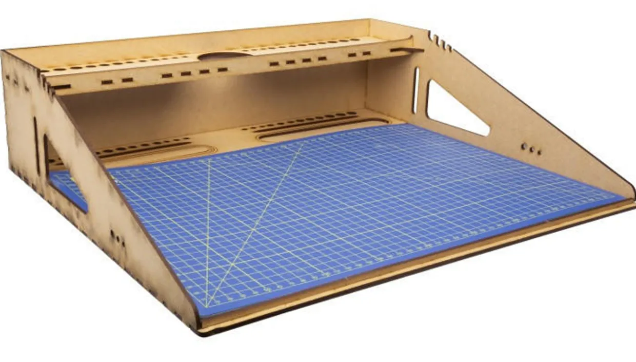 The Model Craft Work Station A3 with Cutting Mat from the modelling tools and accessories range provides a large laser-cut wooden work station with an A3 sized working area. This set includes a Model Craft A3 Cutting Mat