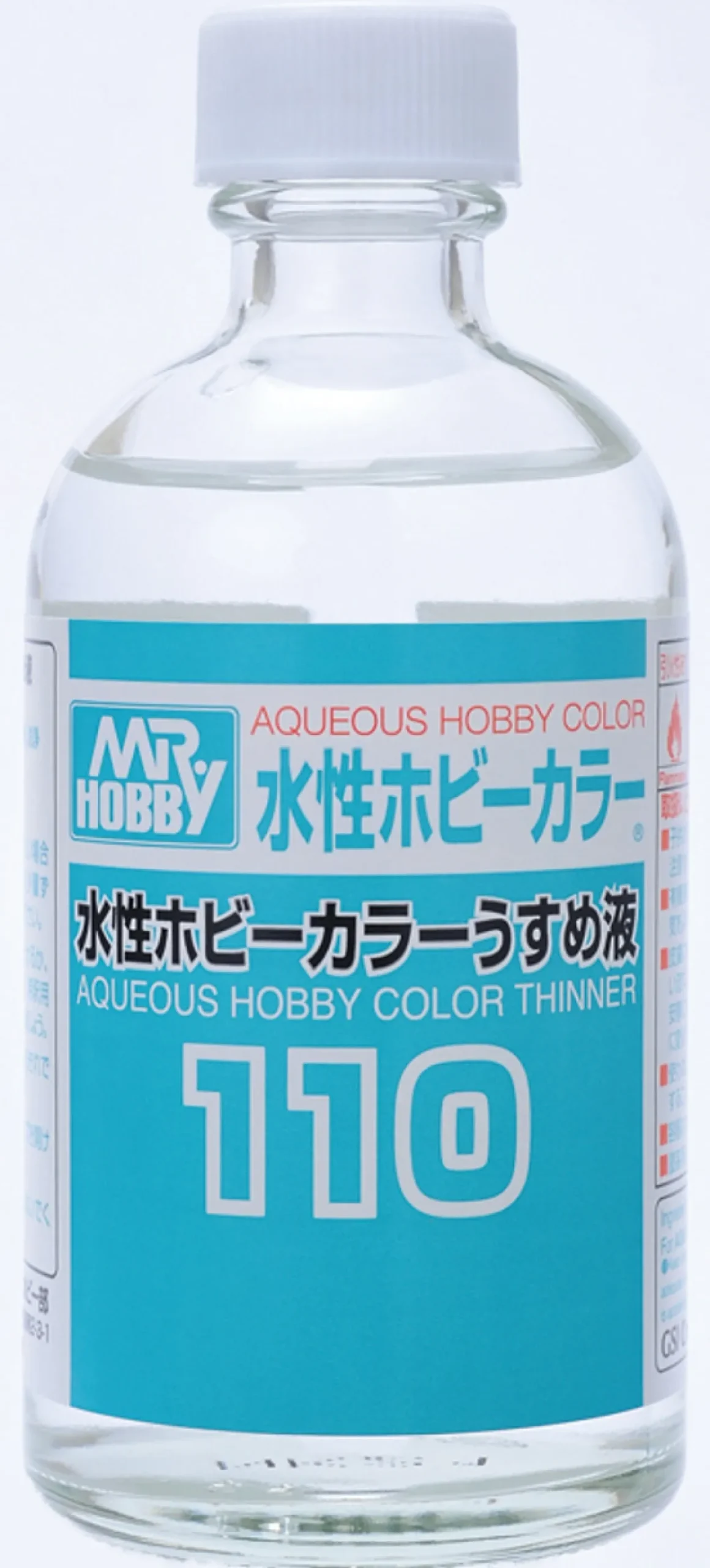 The Mr Hobby Aqueous Hobby Color Thinner 110ml from the modelling accessories range provides a thinner specifically formulated for the Aqueous Hobby Colour water-based acrylic paints.