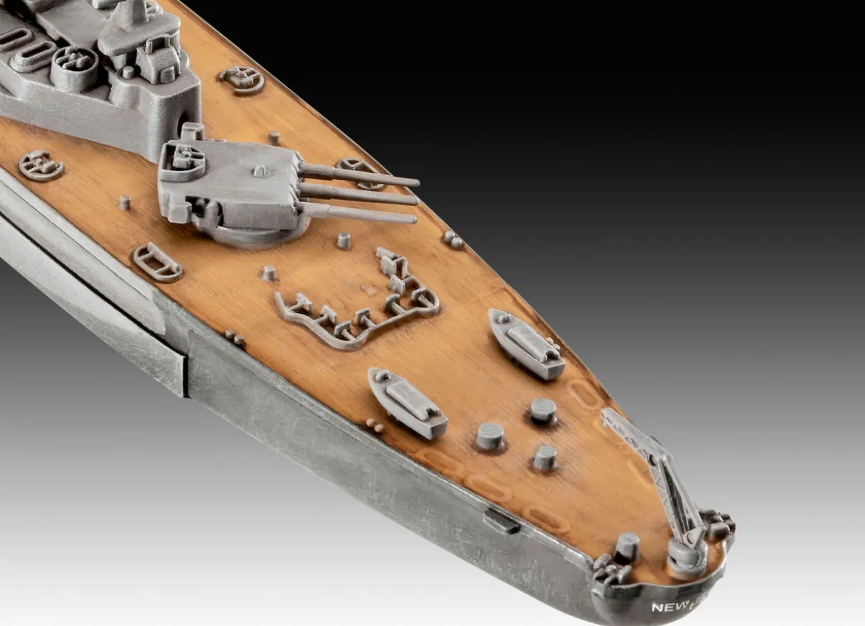The Revell 1/1200 USS New Jersey from our 1/1200 scale ship model kits range accurately recreates the real-life US battleship from World War II. This plastic model kit requires paint and glue to complete.