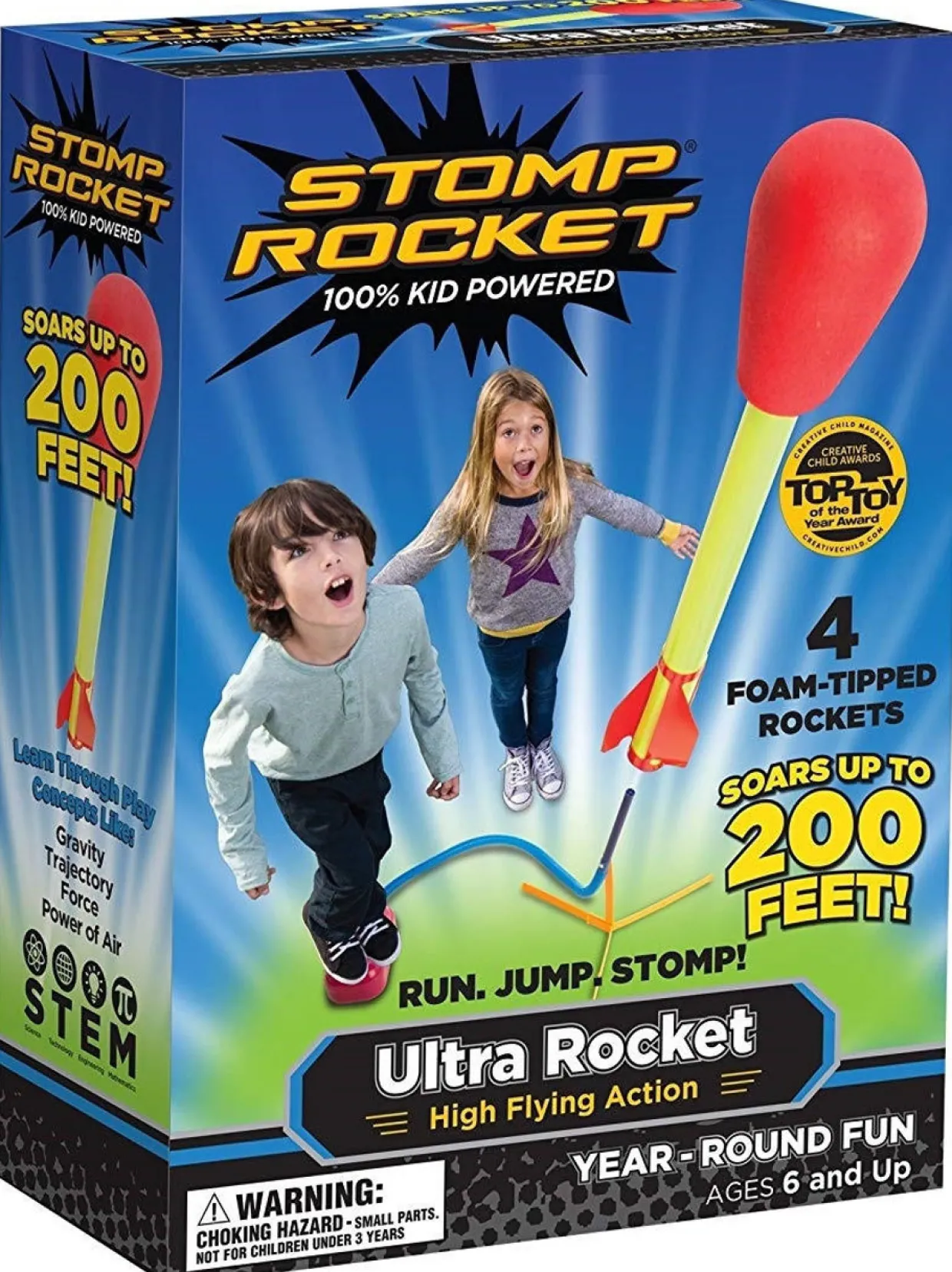 Run, Jump, STOMP to launch rockets up to 200 feet in the air. With 4 soft foam tipped rockets there’s endless fun to be had!