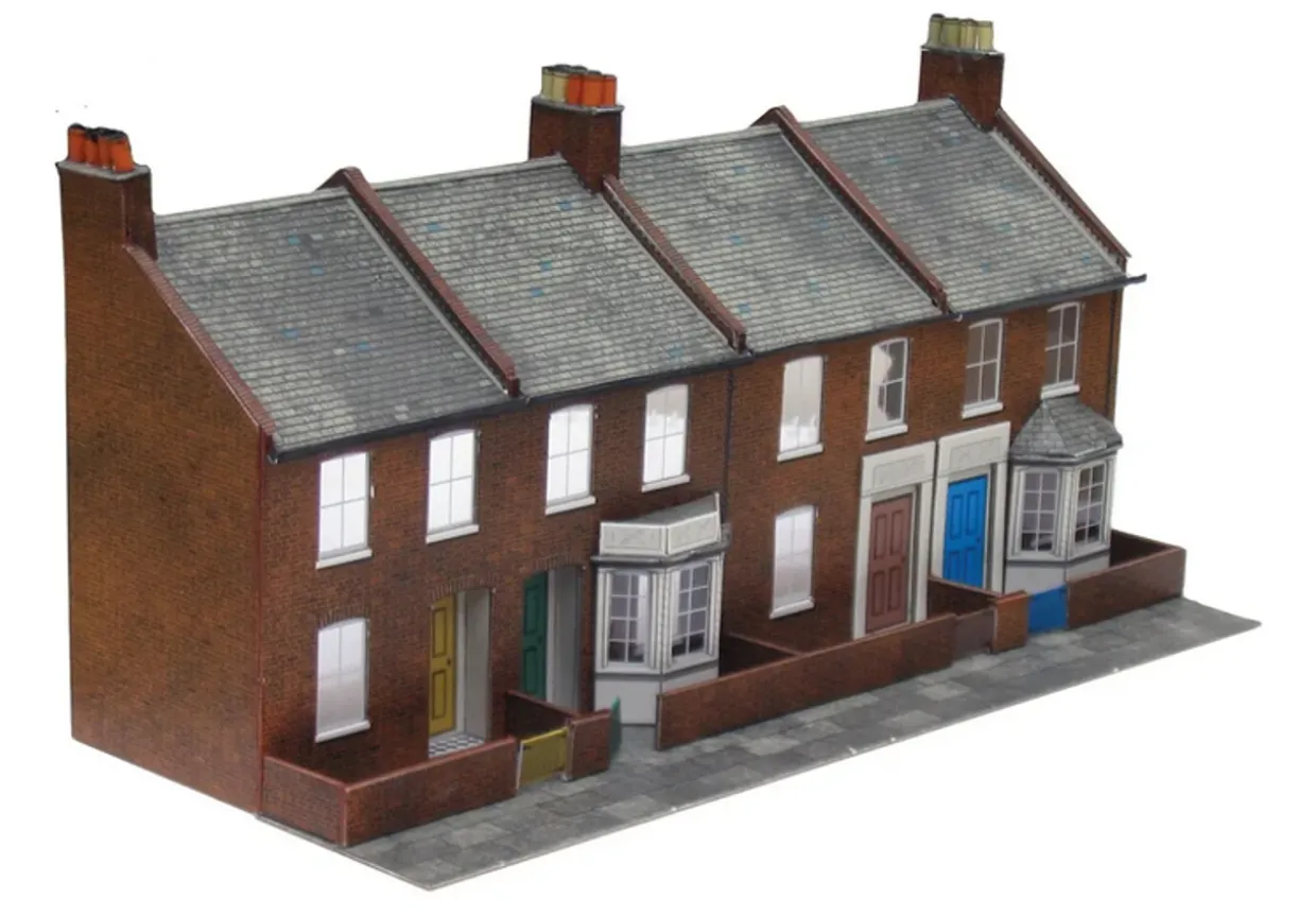 The Superquick 1/76 Terrace Fronts (Red Brick) provides a highly detailed pre-coloured and pre-cut papercraft card model – ideal to add to your OO gauge model railways layout.