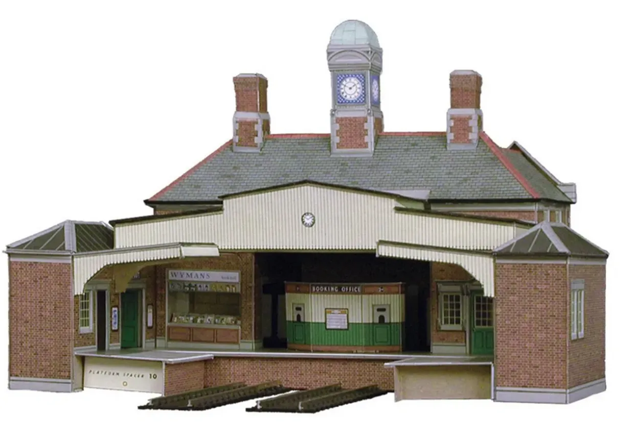 The Superquick 1/76 Railway Station Terminus provides a highly detailed pre-coloured and pre-cut papercraft card model – ideal to add to your OO gauge model railways layout.