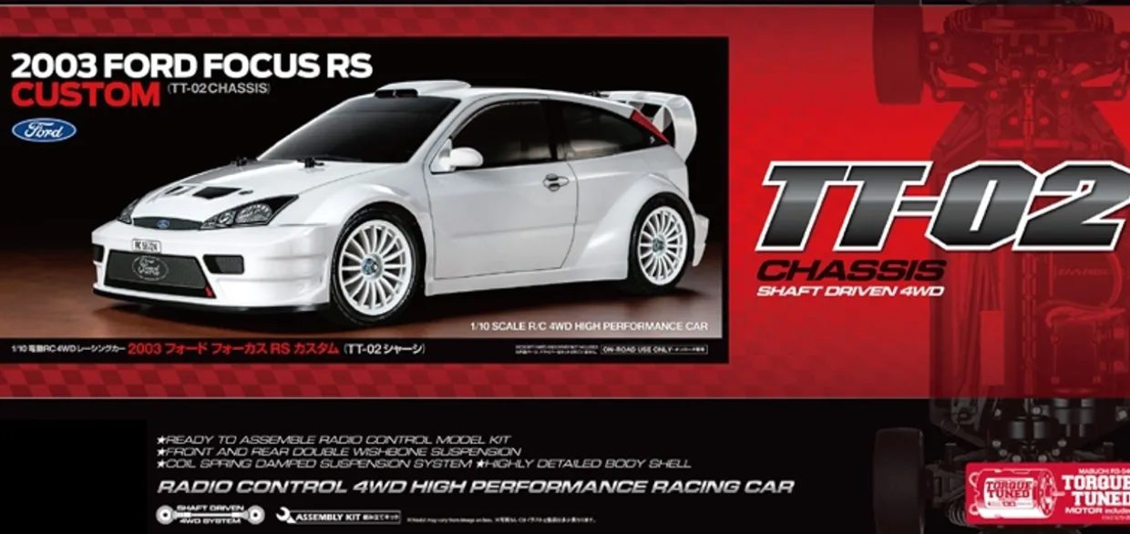 Model: 58724 R/C 2003 Ford Focus RS Custom TT-02 Radio Control Model Kit