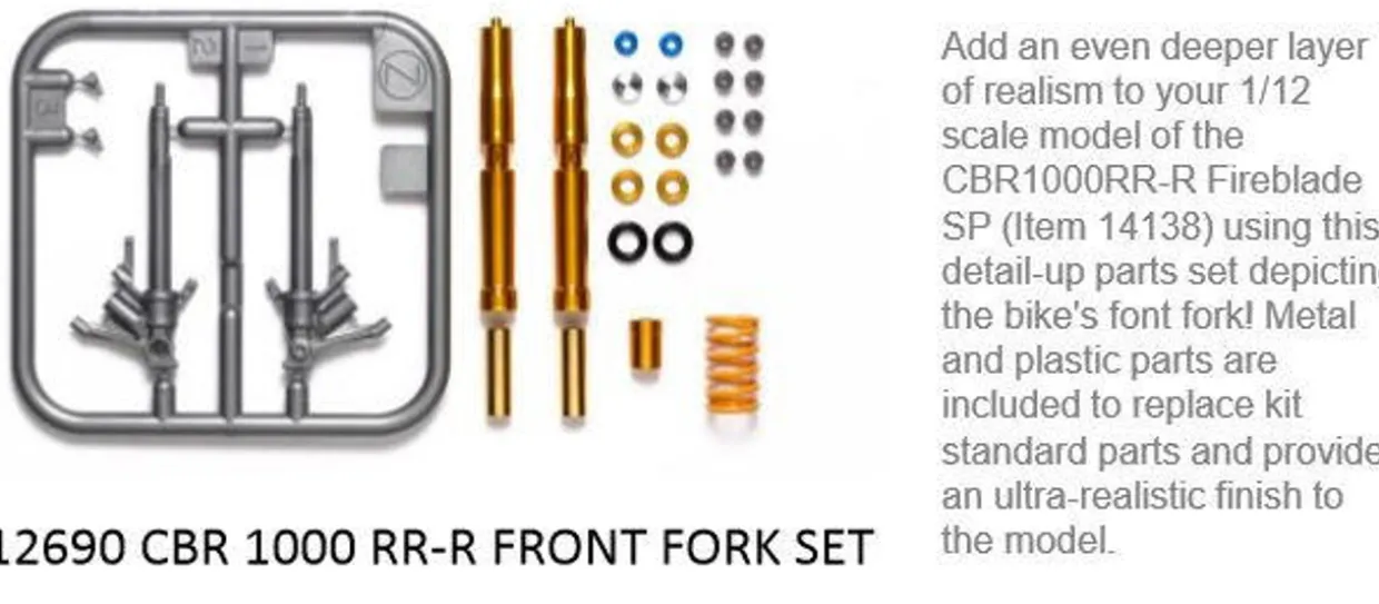 The Tamiya 1/12 Honda CBR 1000 RR-R Fireblade from our 1/12 scale motorcycle model kits range accurately recreates the real-life sports motorcycle. This plastic model kit requires paint and glue to complete.
