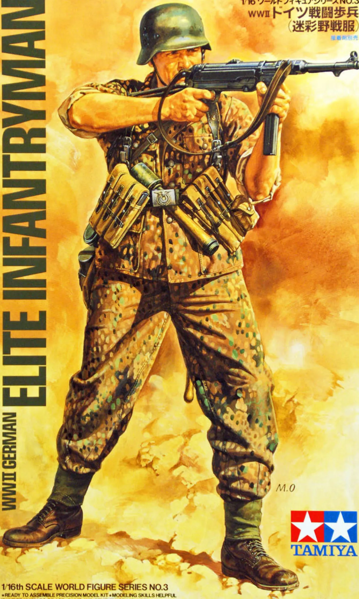 The Tamiya 1/16 German Elite Infantryman from our 1/16 scale figure model kits range accurately recreates the real-life German soldier from World War II. This plastic model kit requires paint and glue to complete.