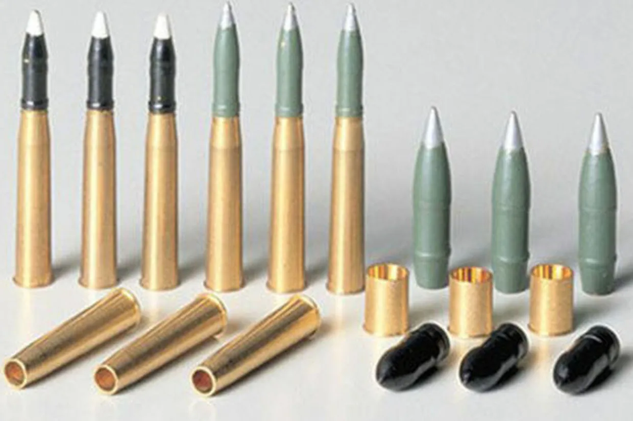 The Tamiya German Sturmgeschutz III Brass Projectiles in 1/35 scale from the military model accessories range provides accurately reproduced brass projectiles in super detail.