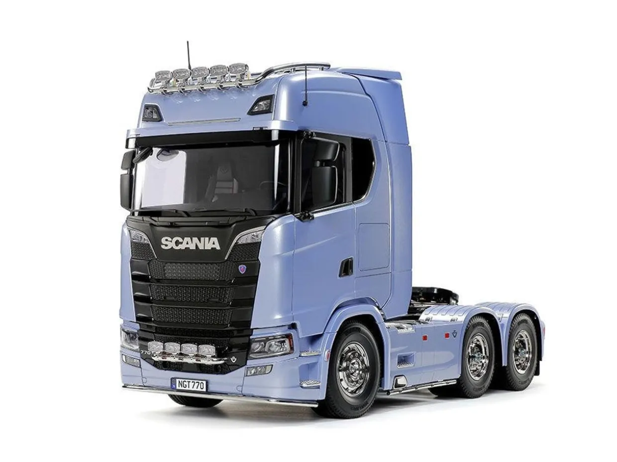 The Tamiya RC 1/14 Scania 770S 6X4 With Option Set from our radio controlled trucks, trailers, and construction vehicles range features 3-axle and is approximately 458mm long. Beautifully reproduced cabin tilts forward separately from the fenders, just like the actual truck.