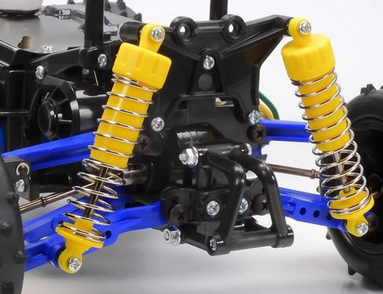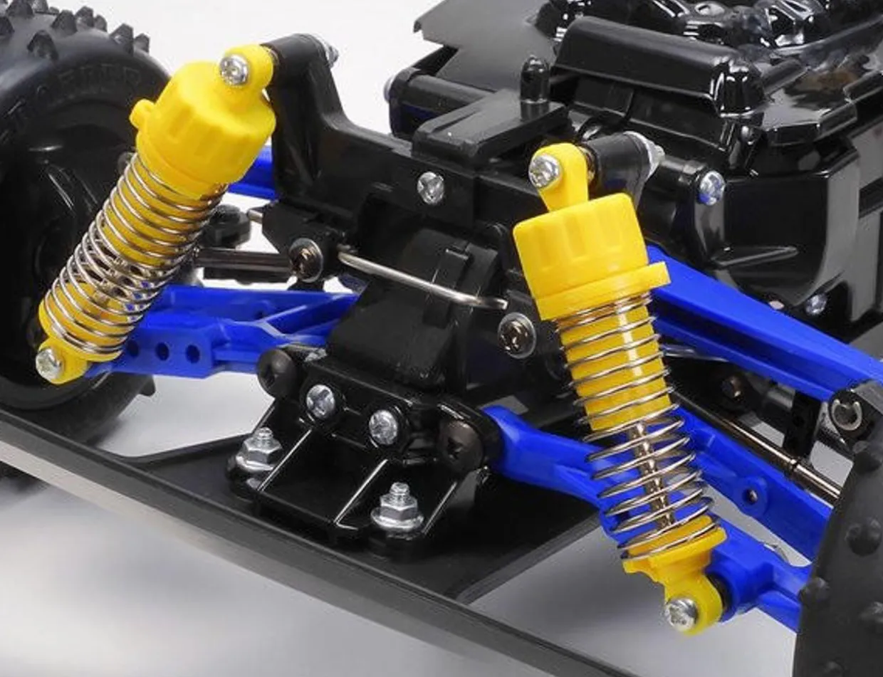 • 4-wheel double wishbone suspension uses CVA oil shock/dampers, and a front stabilizer for a firm setup.