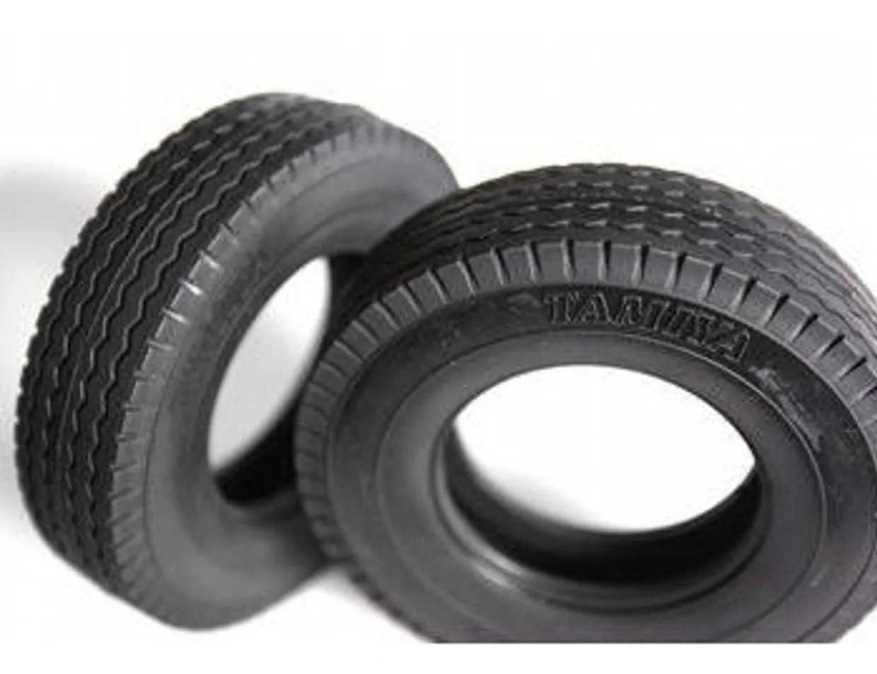 The Tamiya R/C Tractor Truck Tyres (2pcs) Hard 22mm is suitable for use with 1/14 scale Tamiya radio controlled trucks.