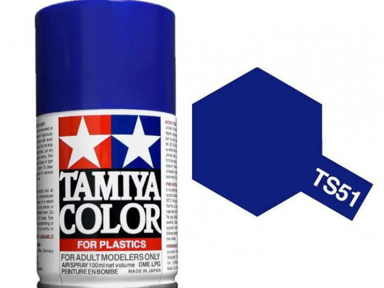 The Tamiya TS-51 Racing Blue Spray Paint is a synthetic lacquer which can be used to paint plastic model kits. Each can contains 100ml of paint, and is not affected by acrylic or enamel paints, meaning further detailing is possible.