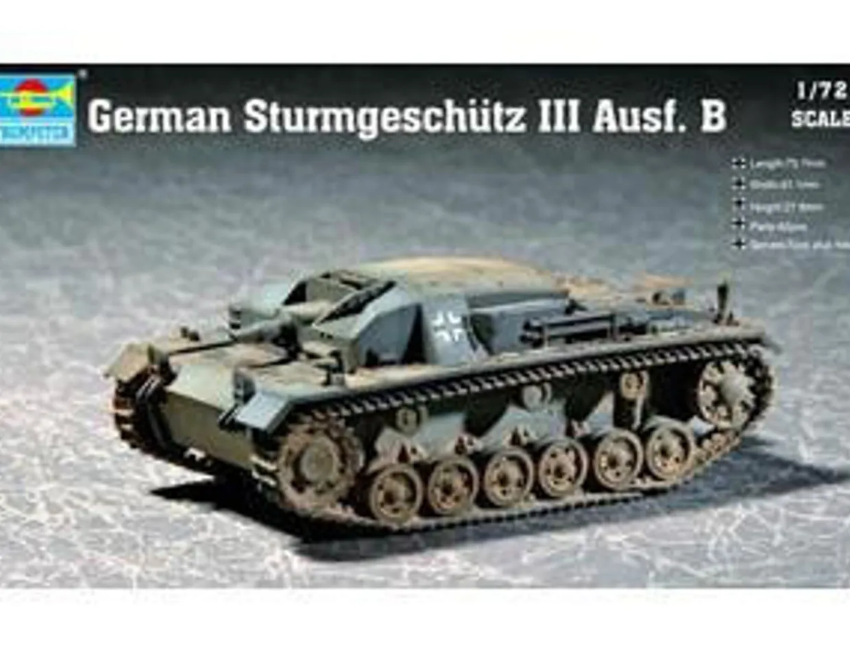 The Trumpeter 1/72 StuG III Ausf.B from our 1/72 and 1/76 scale military vehicle model kits range range accurately recreates the real-life German tank destroyer from World War II. This plastic model kit requires paint and glue to complete.