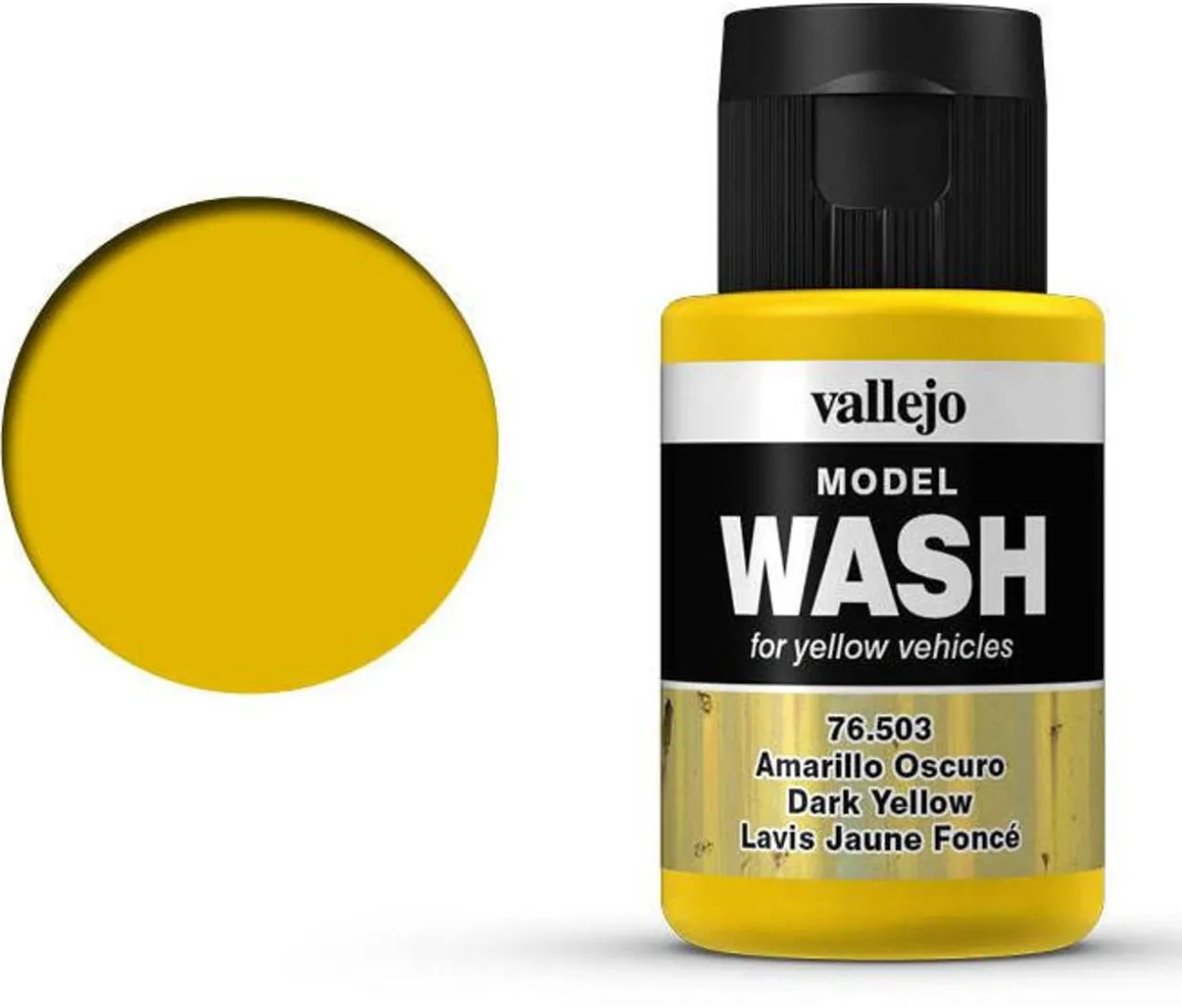Vallejo Acrylic Wash 35ml Dark Yellow. Model Wash is a range of washes created with a unique water-based formula.