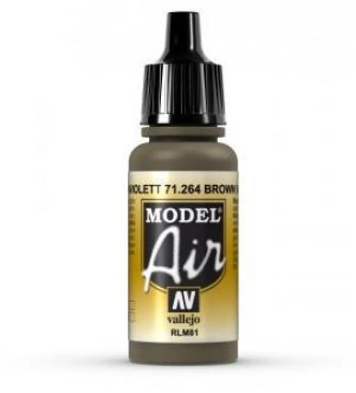 The Vallejo Model Air 264 17ml Brown Violet RLM81 Acrylic Paint is just one of many colours from the Model Air range. Vallejo Model Color Acrylic Paints range offers a wide selection of colours pre-thinned for use in an airbrush.
