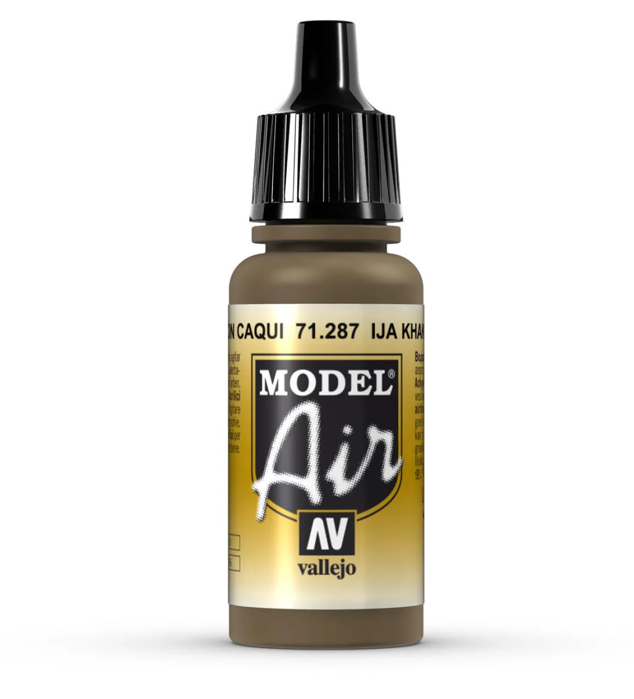 The Vallejo Model Air 287 17ml Khaki Brown Matt Acrylic Paint is just one of many colours from the Model Air range. Vallejo Model Color Acrylic Paints range offers a wide selection of colours pre-thinned for use in an airbrush.