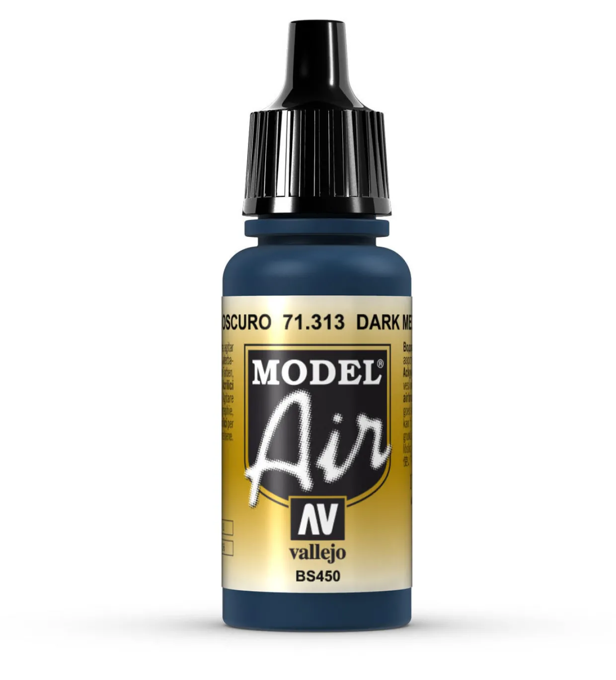 The Vallejo Model Air 313 17ml Dark Mediterranean Blue Matt Acrylic Paint is just one of many colours from the Model Air range. Vallejo Model Color Acrylic Paints range offers a wide selection of colours pre-thinned for use in an airbrush.