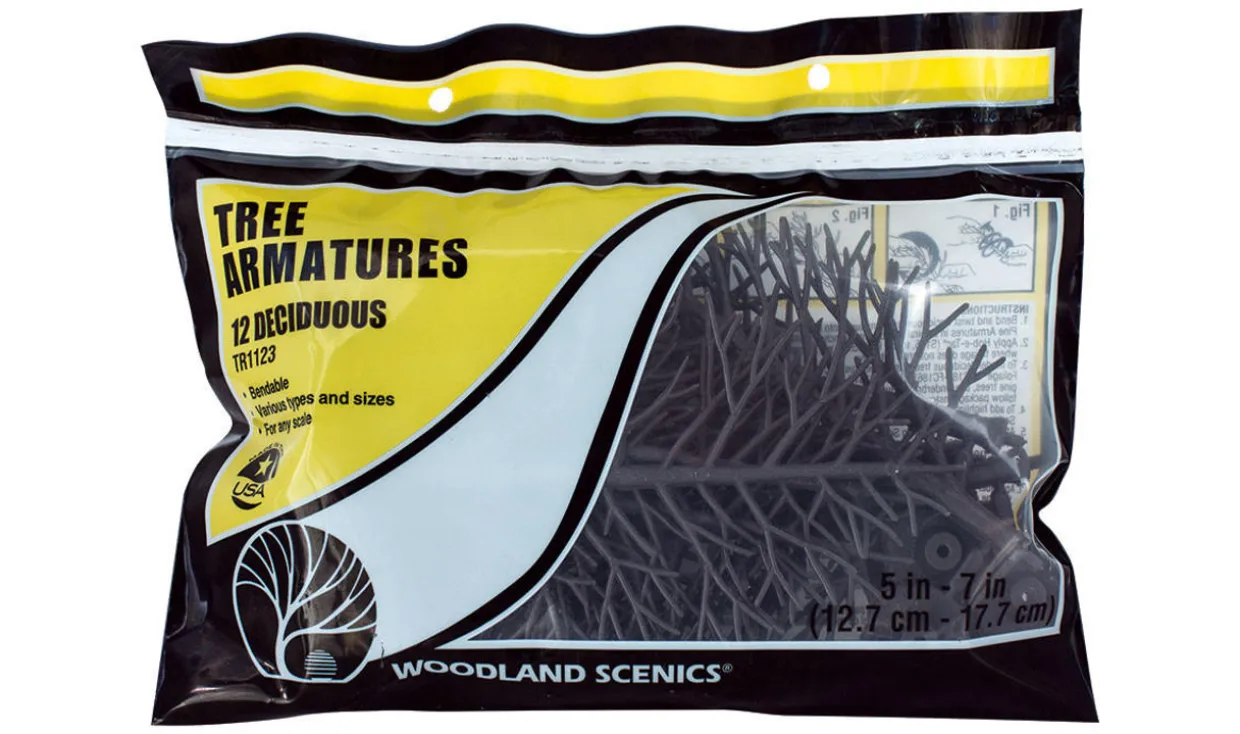 The Woodland Scenics 5″-7″ Tree Armatures (Deciduous).Bend plastic Tree Armatures into any shape.