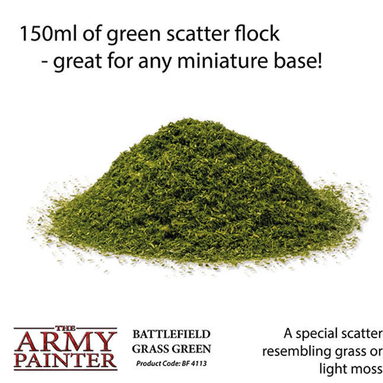 The Army Painter Battlefields Grass Green Scatter 150ml is ideal for basing models or dioramas.