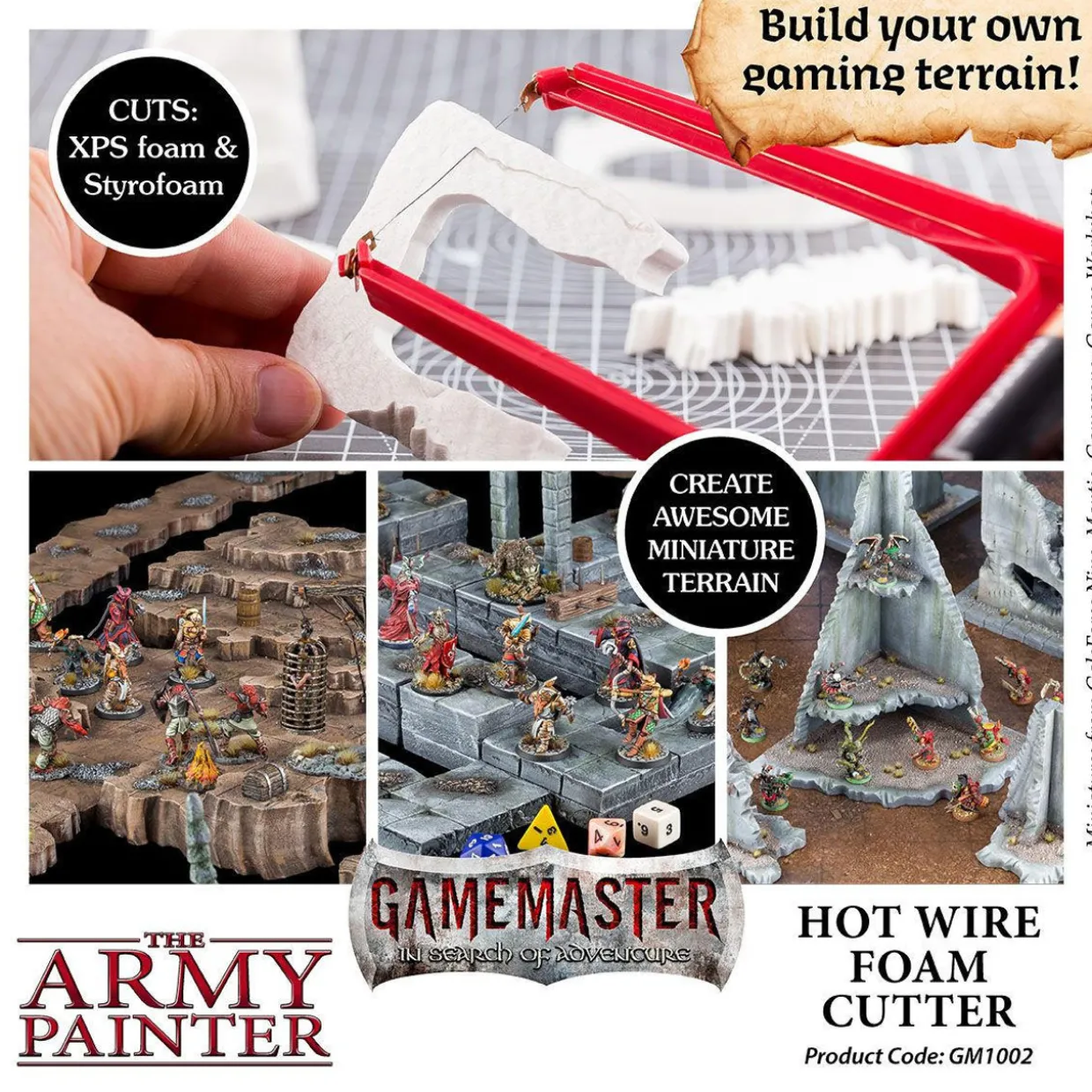 The Army Hot Wire Foam Cutter. This incredibly precise Hot Wire Foam Cutter will give you clean, accurate and fast cuts – every time! It is the perfect tool for cutting XPS foam sheets for any dungeon backdrop, wargaming terrain or landscape scenery. Including 4 extra wires.