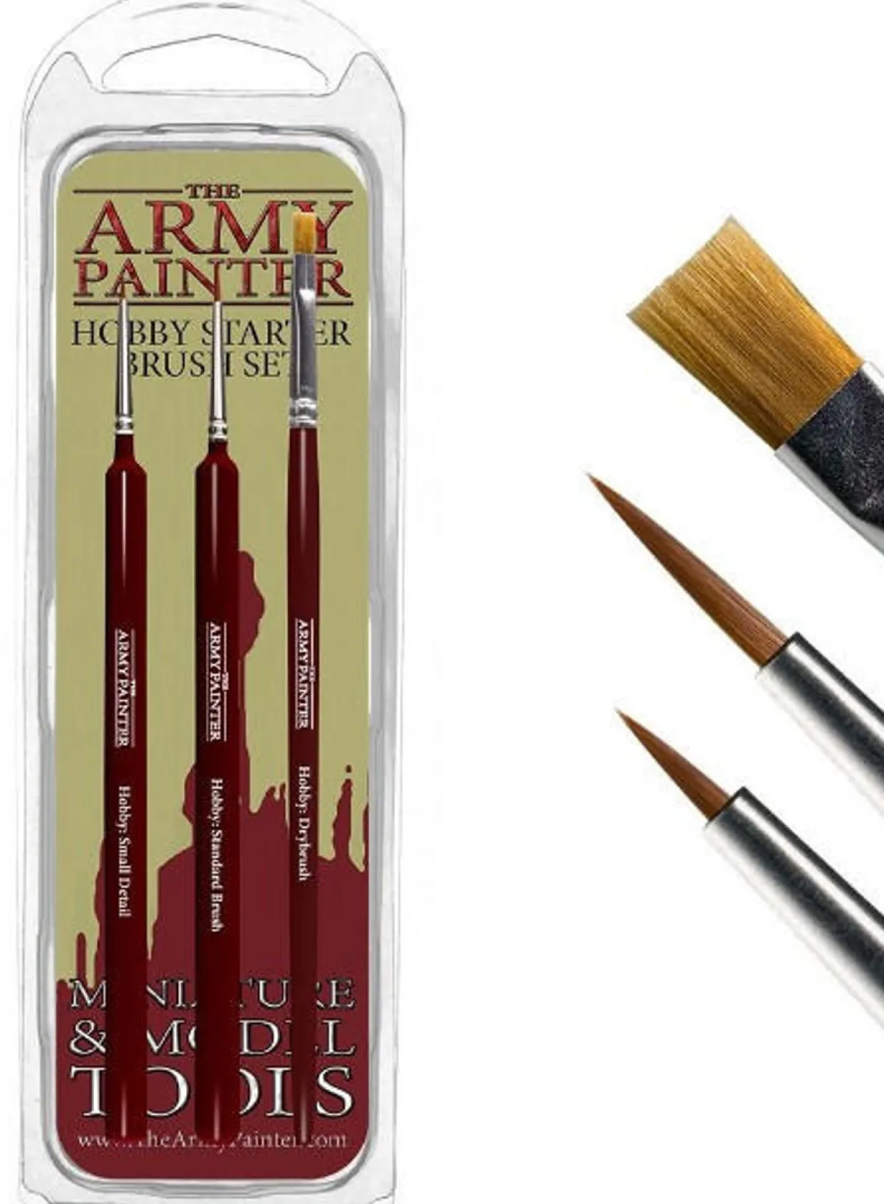 The Army Painter Hobby Starter Brush Set. Made of best quality of fiber synthetic hair for the perfect paint job. Has a triangular precision grip to ensure perfect control and comfort.