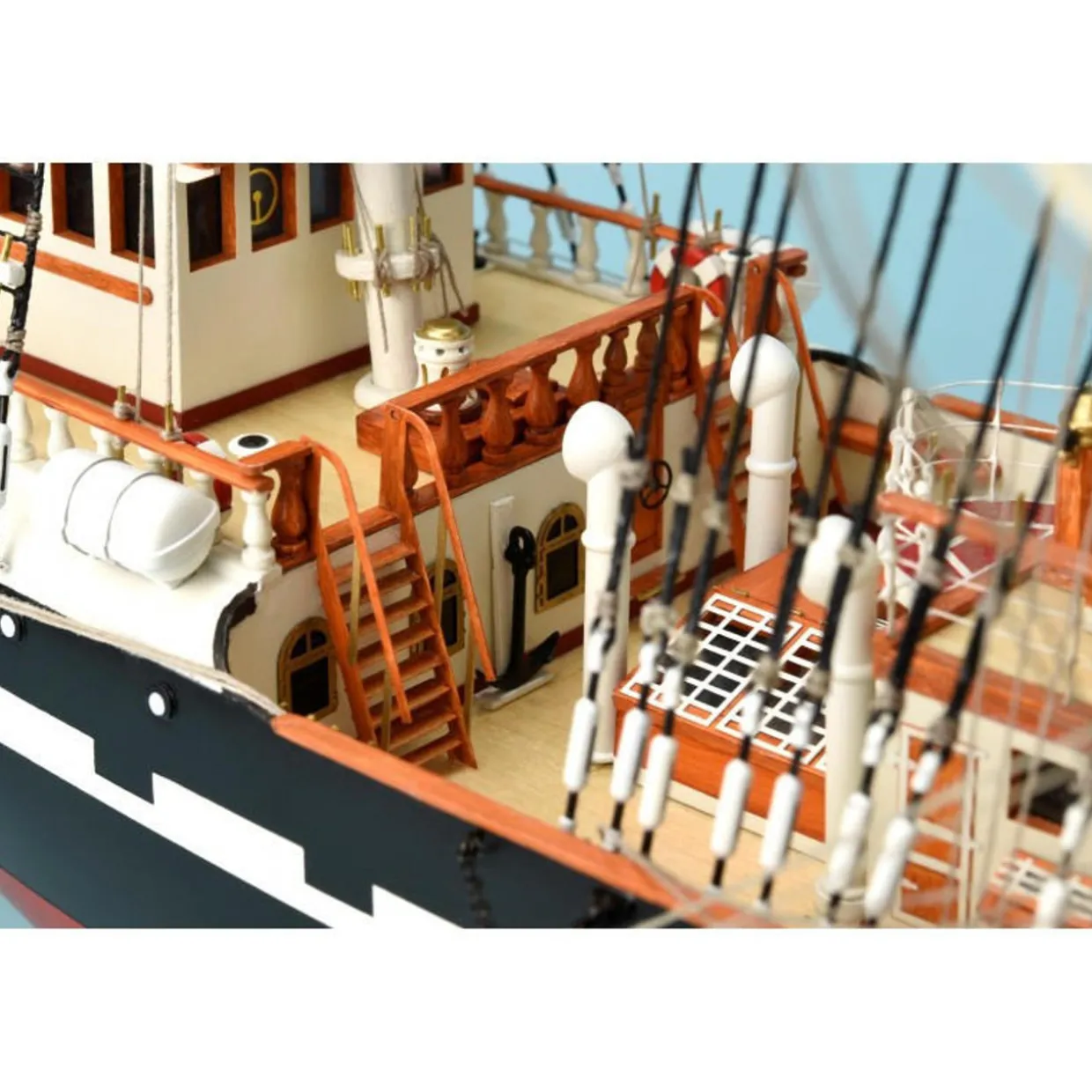 The modeling kit of this wonderful boat is made of wood, and it also has numerous parts of metal.