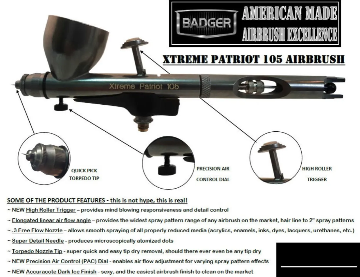 Badger 105XTR Xtreme Patriot Gravity Feed Airbrush
