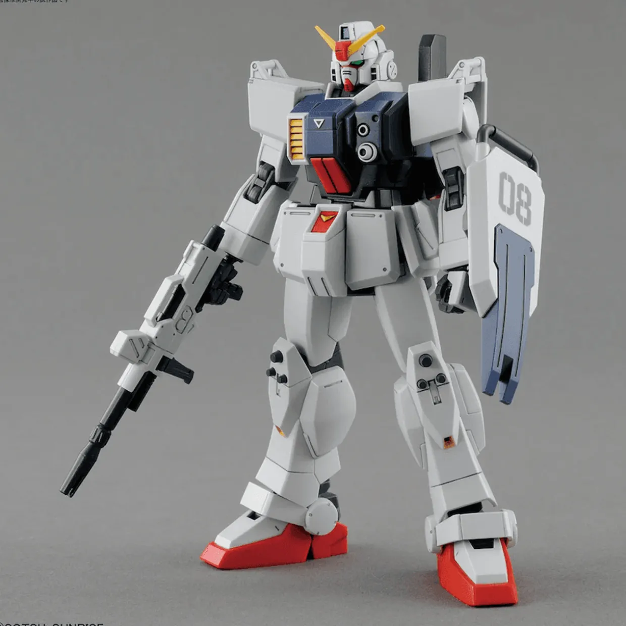 Here comes the HG Gundam Ground Type as seen in “Mobile Suit Gundam: The 08th MS Team”! Its exterior armor parts have been newly molded to recreate the unique look of the Ground Type, including the asymmetrical chest piece. It also features increased mobility, allowing you to recreate it posing on one knee while holding its gun with both hands, and other impressive poses seen in the anime series! The 180mm canon is newly molded, and can be stored inside the wepaon container by replacing certain parts. Order today!