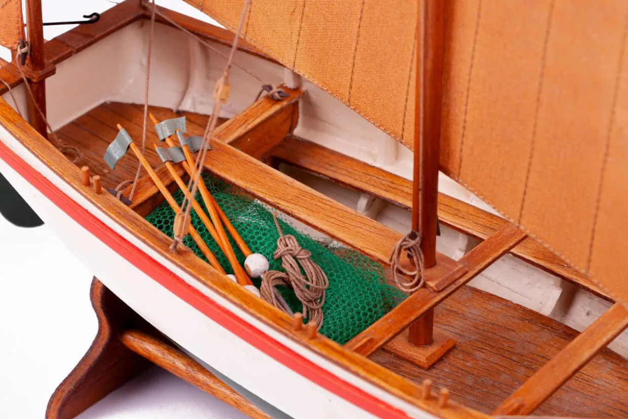 The 1/30 Billings Le Bayard from the wooden ship model kits range accurately recreates the real-life fishing vessel from Fécamp on the north coast of Normandy. Built around 1850. At that time these boats were used for fishing. The hulls were raw unvarnished wood and the sails were red-brown in colour. In 1878 these boats were replaced by lighter ones.
