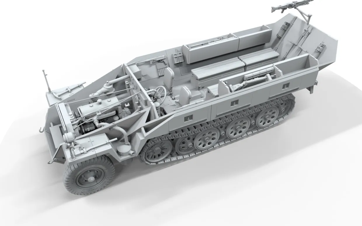 The Border Models 1/35 Sd.Kfz.251 Ausf.D Half-Track from our 1/35 scale military vehicle model kits range range accurately recreates the real-life German armored half-track from World War II. This plastic model kit requires paint and glue to complete.